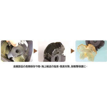 弾性のある厚く丈夫な被膜が、あらゆる形状の機械部品や切削工具、刃物、金型、精密部品等の長期保管や、海外輸出時の防錆幕・耐湿度・耐腐食包装として製品を傷・埃から保護します。
