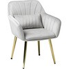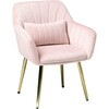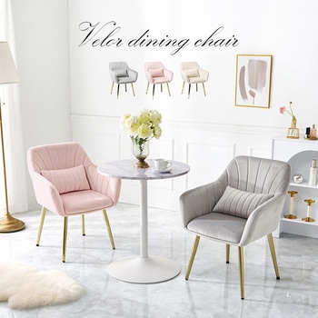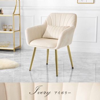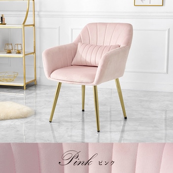 光沢があり高級感のあるベロア調生地にゴールドの脚を合わせた、エレガントな家具シリーズ。背もたれと肘掛けが一体化したオシャレなデザインのダイニングチェア。カラーはピンク、アイボリー、ライトグレーの3色から選べます。姫系家具や大理石調家具との相性も抜群。【商品サイズ(約)】幅59×奥行56×高さ75.5×座面41cm【梱包サイズ(約)】59×58.5×41cm(8.7kg)【材質】フレーム:積層材/スチール(メッキ)生地:ポリエステルクッション材:ウレタンフォーム【生産国】中国【備考】組立品(工具付属)