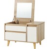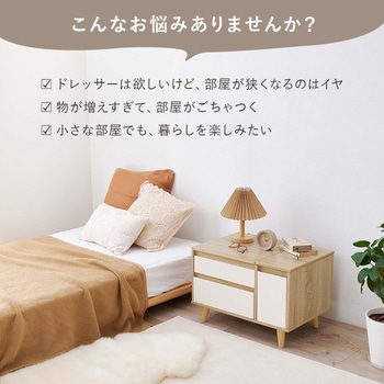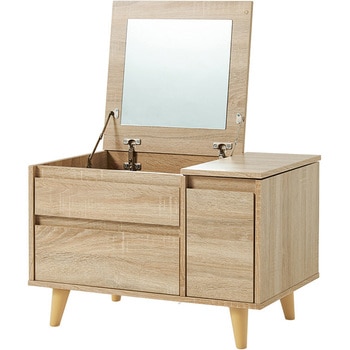 天板を開けばドレッサー、閉じればテーブル。ワンルームに置きやすい幅60cmのコンパクトサイズながら、アイシャドパレットやリップクリーム、アクセサリーなどの小物から化粧水や乳液、ヘアスプレーなど高さのあるものまでしっかり収納できる大容量設計です。大きめミラーで座ったままでもメイクしやすく、毎日使うコスメからストック品までまとめて整理。使わない時はテーブルとして、お部屋をすっきり見せてくれる2way仕様です。コンパクトなのに、しっかり収納。限られたスペースでも快適なドレッサー時間を叶えます。【商品サイズ(約)】幅60×奥行40×高さ40cm【梱包サイズ(約)】64×44.5×18cm(16kg)【材質】プリント紙化粧パーティクルボード【生産国】インドネシア【備考】組立品(プラスドライバーとハンマーをご用意ください)
