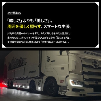 対向車や周囲へのマナーを考え、あえて眩しさを抑えた設計に。求めたのは、2本のラインが浮かび上がるような「品のある光」です。その独特な光り方は、他とは違う「次世代のユーロスタイル」を象徴する証となります。