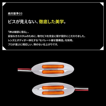 「神は細部に宿る」。妥協なきカスタムのために、取付ビスを完全に隠す設計にこだわりました。レンズとボディが一体化する「セパレート被せ蓋構造」を採用。プロが選ぶに相応しい、隙のない仕上がりです。