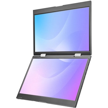 14型液晶パネルを2画面搭載したデュアルモバイルディスプレイです。フルHD解像度のパネルを2面搭載し、ノートPCと組み合わせることで省スペースで最大3画面のマルチディスプレイ環境を構築できます。表示モード拡張・複製・大画面の3種類。モードの切替は本体スイッチで直感的に行えます。さらにGセンサーにより自動で上画面を反転するので対面の相手に画面を共有する際も便利。