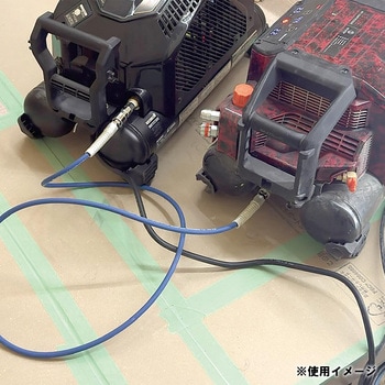 コンプレッサーを2台連結することができ、組み合わせによっては異なるメーカーでも対応可能。タンク内の圧力が2.0MPaを下回ってくると75mmや90mmの釘が浮いてくるので、待ち時間を無くし効率良く作業を進める為に連結が有効。理路上では2台連結をすることにより10倍以上の釘が打てるようになる。取付方法も簡単なので、作業現場での対応も簡単。