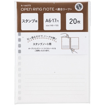 ノート別売のスタンプノート用交換リーフです。オープンリングノートシリーズにも対応しています。スタンプのインクが裏抜けしにくい集めの紙を使用。スタンプを押す位置を決めやすい三角ガイドや、旅の思い出を記入できる罫線付き。旅先で持ち歩くのに便利なA6サイズです。本体寸法(リーフ1枚あたり):幅×奥行×高さ 105×5×148mm本体重量:1枚2g内容量:1組(リーフ20枚)※ノートは付属しておりません。規格:A6材質:本体/上質紙