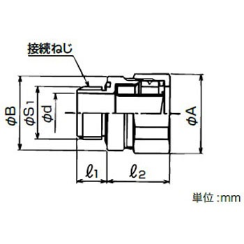 ビニル被覆ケイフレックス用のステンレス(SUS304)製のボックスコネクタです。呼び#70 以上の袋ナットは、形状が丸型です。表中の「接続できるケイフレックス」欄の※はLIC,LIH を推奨しますが標準のビニル被覆ケイフレックス KMS,KMV,KPF,KIC,KIH,KIV,KMEC 及びブレード掛けケイフレックスLIB,LMB も接続できます。