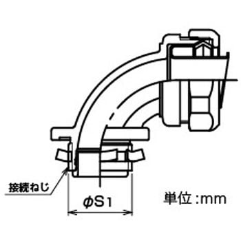 ビニル被覆なしケイフレックス(型式KM/KI)を制御盤のノックアウトに接続するための90°形コネクタです。ケイフレックスとコネクタの引張力は#10は500N(JIS C 8461-23の分類コードは3ミディアム)、#12~54は1000N(JIS C 8461-23の分類コードは4ヘビー)です。