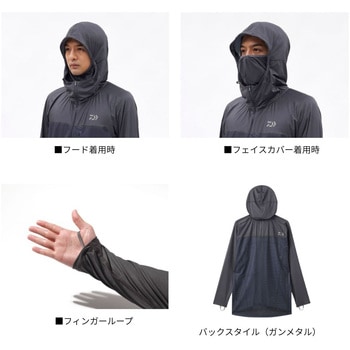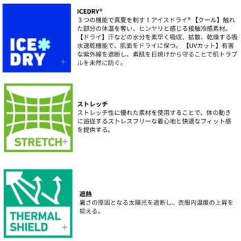 太陽に晒されやすいフード、フェイス、腕部にはUVケア(UPF40)、吸水速乾、接触冷感のあるICEDRY(R)に遮熱性能も併せ持つ素材を採用。