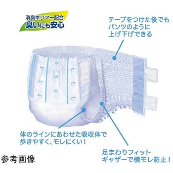 フィットギャザーがついているので足まわりからの横モレを防ぎます。また、消臭ポリマーを配合しているので臭い対策にも適しています。