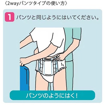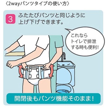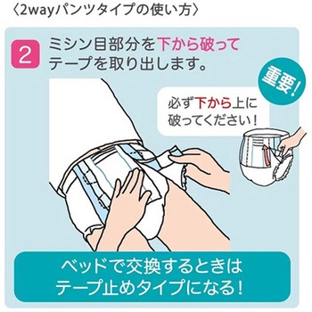 お腹まわりが開閉するので、尿パッドの交換も簡単、テープを着けた後でもパンツのように上げ下げできます。