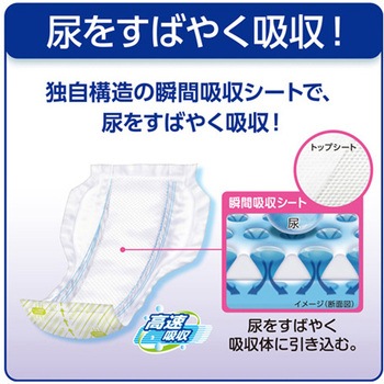 瞬間吸収シートと拡散スリットのW採用で、尿をすばやく吸収!