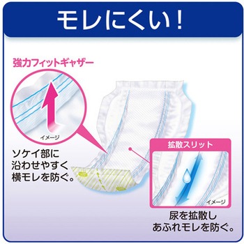 一気に排尿しても、横向き寝でもモレずに安心。さらに、尿が逆戻りしないので表面はさらさら快適です。