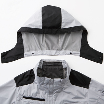首から涼風が吹き抜ける。遮熱性を備えた大型フード付長袖ブルゾン。ファン・バッテリーは別売りです。
