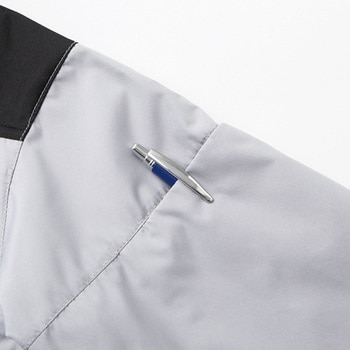 フード取り外し可、両脇ポケット、左袖ペン差し