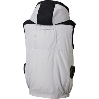 背中で邪魔にならないサイドポジションファン仕様。遮熱性を備えた大型フード付ベスト。ヘルメットの上から被れるフードは風が抜けて快適。取り外しも可能です。ファン・バッテリーは別売りです。