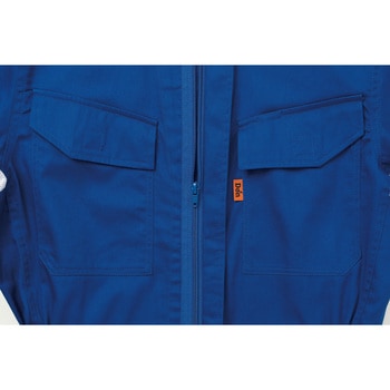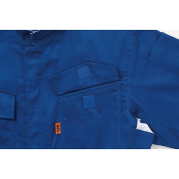 フロント:コイルファスナー、フラップ:面ファスナー、ウエスト:脇ゴム、左袖ペン差し