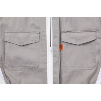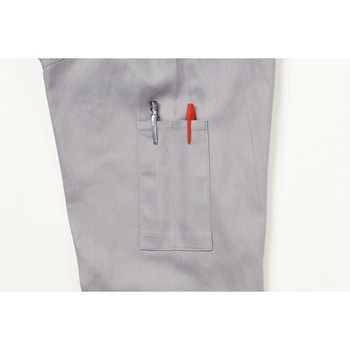 フロント:コイルファスナー、ウエスト:脇ゴム、左袖ペン差し