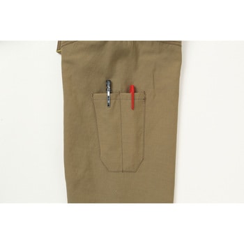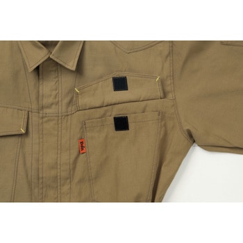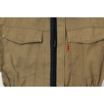 フロント:コイルファスナー、フラップ・袖口:面ファスナー、ウエスト:脇ゴム、左袖ペン差し