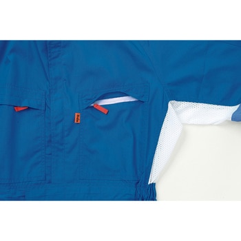 T/C素材の長袖ツナギ。脇のメッシュで風通しを促します。