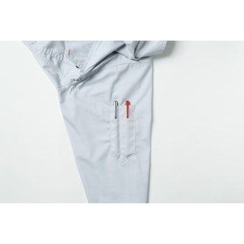 フロント:コイルファスナー、前立て上:プラスチックドットボタン、フラップ・袖口:面ファスナー、左袖ペン差し