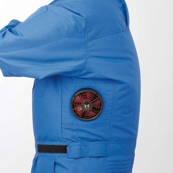 背中が当たっても邪魔にならないサイドファン仕様。高密度で織り上げた平織生地。優れた耐久性としっかりした強度が特長です。つなぎタイプなので、上半身だけでなくパンツにも風が巡ります。ファン・バッテリーは別売りになります。