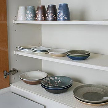 クッション性があり、棚板を傷めず、食器など収納物によるキズつきを防ぎます。