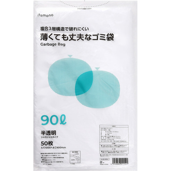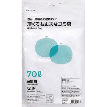 3層構造のフィルムで強度があり、薄くても丈夫です。環境に配慮したゴミ袋です。1枚ずつ取り出せて使いやすい包装形態です。
