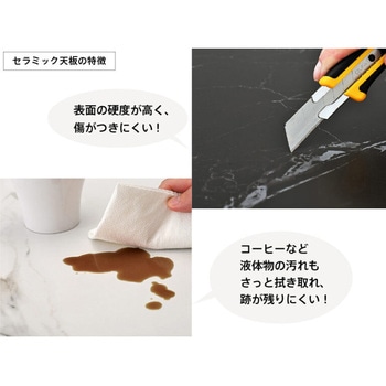 豊富なサイズ・カラーバリエーションを取り揃えたリスタ カフェテーブルの大理石調セラミック天板タイプ。高級感のあるマーブル柄はカフェスペースに上品でモダンな落ち着きを演出。シンプルからホテルライクまで多様なインテリアスタイルに調和します。セラミック天板は耐熱性、耐久性、耐水性、耐薬品性に優れており、紫外線にも強いため、直射日光が当たる場所でも日焼けや色褪せの心配が少なく、公共空間などの様々なシーンで安心してご使用いただけます。