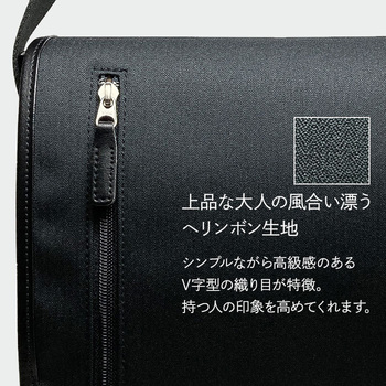 高級感のある落ち着いたへリンボン生地が特徴のフラップショルダーバッグ