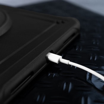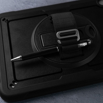 【外装:OPP袋】落としても安心な耐衝撃素材を使用/360度回転ホール/動画視聴・タイピングに適した縦横スタンド/Apple Pencilホルダーつき(裏面)/長さ調節が可能なデイジーチェーンハンドル/縦横対応のストラップホールつき※ストラップ別売