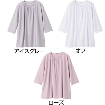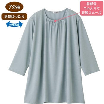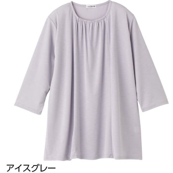 821216 7分袖衿元ギャザーチュニックアイスグレーLL