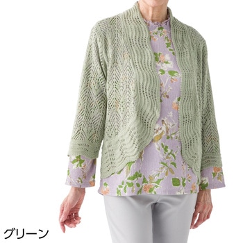 821670 ニット透かし編みボレログリーンLL