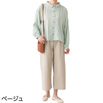 822183 楊柳ゆったり総ゴムパンツベージュM