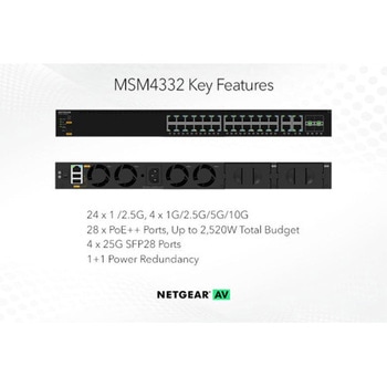 NETGEAR MSM4332-100AJS 24x2.5G、4x10G/マルチギガPoE++(522Wベース、最大2520W)および4xSFP28 25GマネージドスイッチNETGEAR税込¥1,427,800¥1,298,000