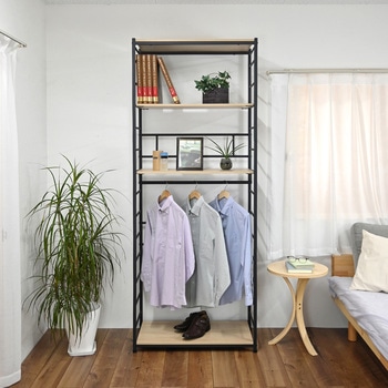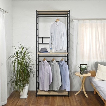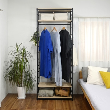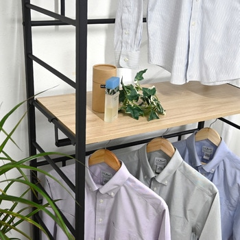 ハンガー掛けと棚収納を両立した設計で、衣類・バッグなどをまとめて整理できます。