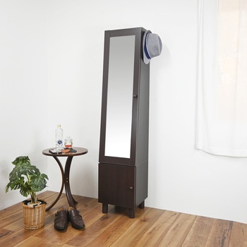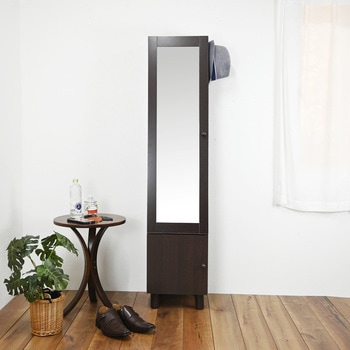 姿見付きで機能性を兼ね備えた便利なおしゃれなスリムラック。