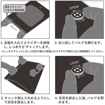 さらに、バルブ式の空気排出口を備えているため、圧縮開閉口から空気が逆流する心配がなく高い密封性により、長期間の圧縮状態をキープできます。