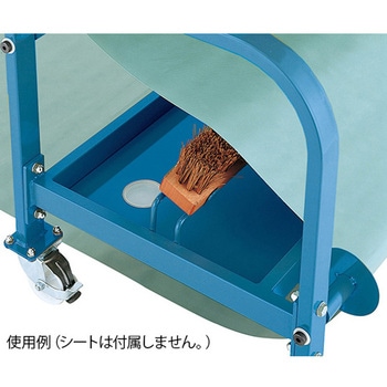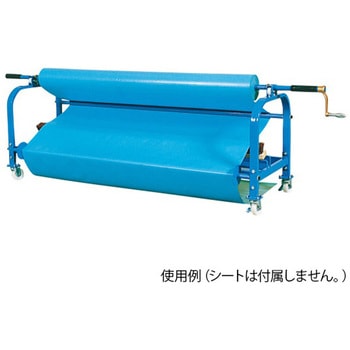 フロアシートの巻取り専用機。本体を巻き取る方向に移動させながら、ご使用ください。移動・設置が簡単なストッパー付き大型キャスター。シートを巻取りながら土砂を掃き落とすブラシと、土砂掃き落とし口が1ヶ所ついた土砂受皿付き。
