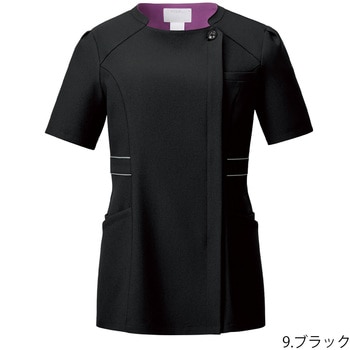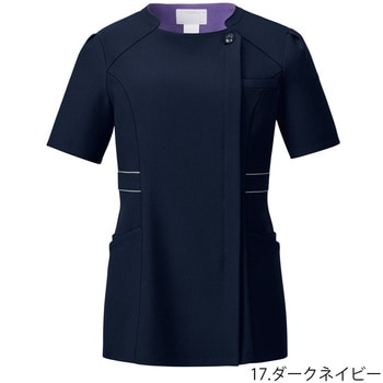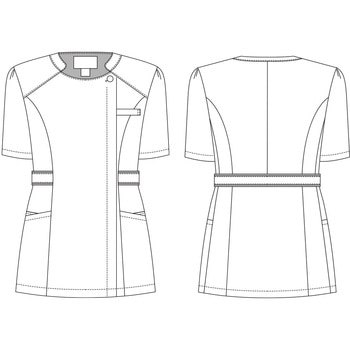 シャープな印象の襟ぐりデザインで、これまでのメディカルウェアにはなかった優しさとスマートさを兼ね備えたチュニック。 お辞儀の際も胸元の開きが気になりにくい、狭めの襟ぐり設計で安心。長めの袖丈と肩のタック仕様がエレガンスさを演出し、二の腕をすっきり見せながら肩まわりの窮屈さを軽減。ウエストのパイピングがスタイルアップ効果を高めます。 開発には身長155cm~170cmの社員が全面協力。 お尻まで隠れる長めの着丈で、身長差があってもバランスよく見えるようにこだわって設計しました。 デザイン性と機能性を両立し、快適な着心地を追求した、上品で安心感のあるチュニックです。