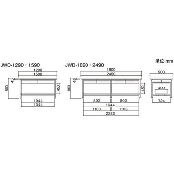 作業台 スチール製・両面引出し付き JWDシリーズ