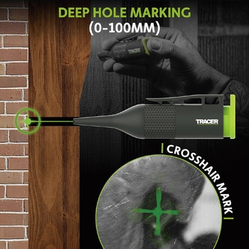 付属品:カードリッジ。プッシュするだけで、最長100mmの深さまでマーキングが可能なスプレー式ディープホールマーキングツールです。独自の十字ノズルを採用しており、液の飛び散りが少なく、視認性に優れたグリーンチョークでマーキングができます。握りやすい形状により片手で簡単に操作でき、天井などへの上向きスプレーも可能です。交換可能なカートリッジは、1本につき約250回のスプレーが行えます。ポケットクリップとストラップホールを備えた、頑丈なABS樹脂製のボディを採用しています。後部には3段階ロック(スプレー、ロック、交換)を搭載しており、液漏れや誤射を防ぎます。カートリッジが1本付属しています。