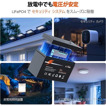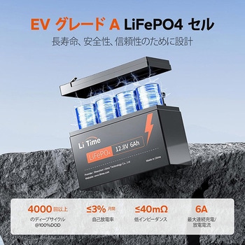 【車載グレードのリチウムバッテリー】LiTimeのリン酸鉄リチウムバッテリーは、より高いエネルギー密度、より安定された性能、より大きな出力を持つ車載グレードのLiFePO4セルで製造されているため、品質に優れています。バッテリー内のセルはUL試験証明書に基づく最高レベルの安全性を誇ります。鉛バッテリーと違い、ガスが発生せず簡単に取り付けることができます。このことにより、リチウムイオンバッテリーは、太陽光発電、キャンピングカー、車中泊、オフグリッドなどに最適です。ご注意:クランキング電流が低いので、起動電源としてのご使用はお控えてください。