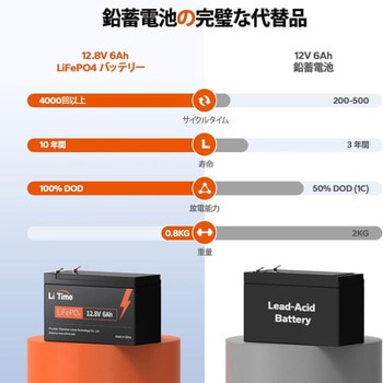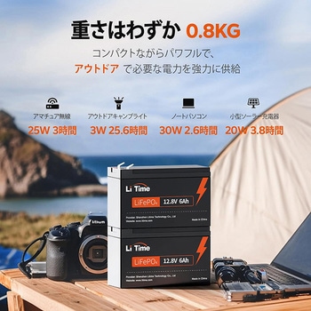 【保証とアフターサービス】LiTimeの12.8V6Ahは分かり易い日本語マニュアルと3年間の安心保証を整っています。どんな質問でも24時間以内に丁寧な日本語で親切に対応できます。(ケーブルと充電器は別購入となります。LiFePO4専用充電器を使用してください。鉛蓄電池用ではLiFePO4が完全に充電されない可能性があります)