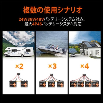 24V、36V、48Vのバッテリーバンクと互換性があり、車中泊、キャンピングカー、エレキモーター、トローリングモーター、オフグリッドシステムなど、さまざまな用途に活用可能です。