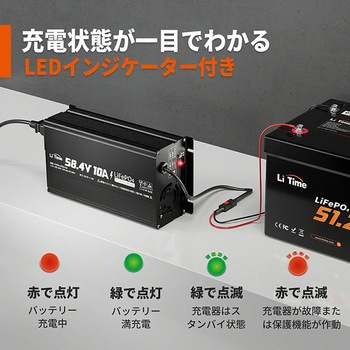 【初心者にも優しい操作設計】赤(+)黒(-)ケーブルを接続後、AC電源に差し込むだけで自動充電開始。LEDインジケーターにより、バッテリーと充電器の状態が一目で分かり、初めての方でも安心して使用できます。