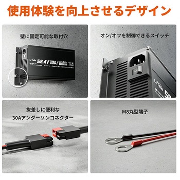 出力電圧: 58.4V DC | 出力電流: 10A | 入力電圧: 100V ~ 240V AC、50Hz ~ 60Hz