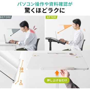 座り作業、立ち作業が行えるパーソナルデスクです。