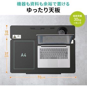 天板奥側固定式になっており、タブレットを置けるホルダー、ペットボトルを置けるドリンクホルダーがあります。
