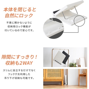 隙間にスッキリ、収納も2WAY!スリムに自立するだけでなく、フック穴を利用した吊り下げ収納も可能
