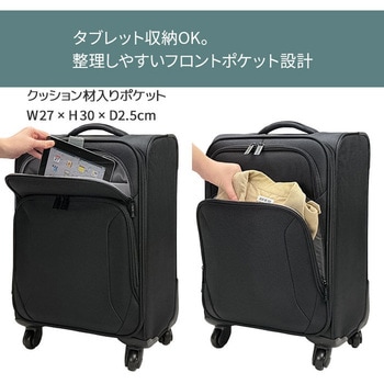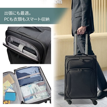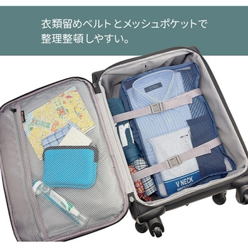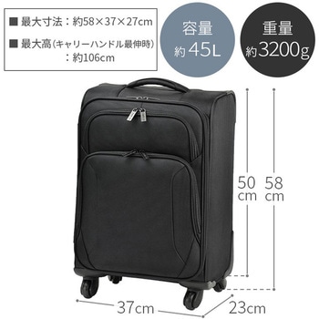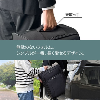 出張や旅行に活躍する容量45Lの4輪キャリーキャリーバーは86~106cmの使い勝手に合った3段階の高さに調節可能衣類留めベルトやクッション材入りポケット等、使いやすいよう工夫された仕様ですシンプルなデザインで家族でシェアして使えるのも魅力です