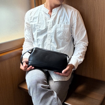 柔らかくしなやかな牛革を使ったハンドル付きのセカンドポーチチャックダレス式のメインルームは見やすく取り出しやすい作り上品な曲線フォルムはシンプルながらも存在感がありますシックで落ち着いたデザインで、普段使いから結婚式、プレゼントにもお勧めです